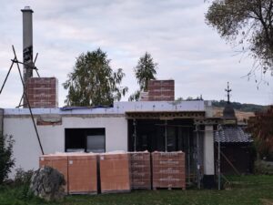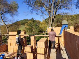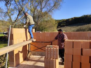 na týchto pár záberov si môžete pozrieť, ako napredujeme so stavbou. Po založení šalungu na celú platňu sa mohla zalievať deka. Nuž a tieto krásne jesenné dni sa už ťahajú obvodové múry na poschodí. Ďakujeme za všetku Vašu podporu, ktorá pre nás má mnoho podôb …. Ste v našich modlitbách.